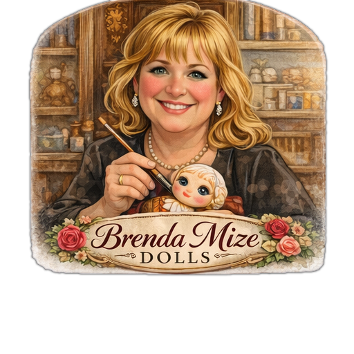 From her earliest creations under the name Eyes of Texas Dolls to her re-envisioned brand, Brenda Mize Dolls, Brenda continues to celebrate the artistry, emotion, and storytelling behind every porcelain face she paints. Each doll arrives with a Certificate of Authenticity, signed by the artist, ensuring its place in the lineage of collectible art dolls designed to be cherished for generations.
